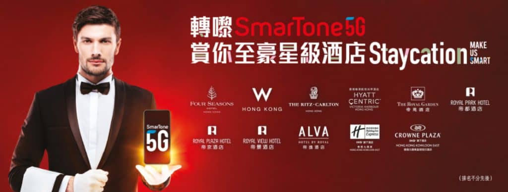 新地與 SmarTone 合作,特意為新上台客戶推出「至豪星級酒店 Staycation」,新上台客戶可於新地旗下指定酒店,享受高達兩晚豪華住宿體驗,包括客房升級,免費早餐、以及其他額外尊享禮遇如水療券、生日蛋糕等。當中酒店包括四季酒店、麗思卡爾頓酒店、香港 W 酒店、香港維港凱悅尚萃酒店、帝苑酒店、帝都酒店、帝京酒店、帝景酒店、帝逸酒店、香港九龍東皇冠假日酒店及香港九龍東智選假日酒店。