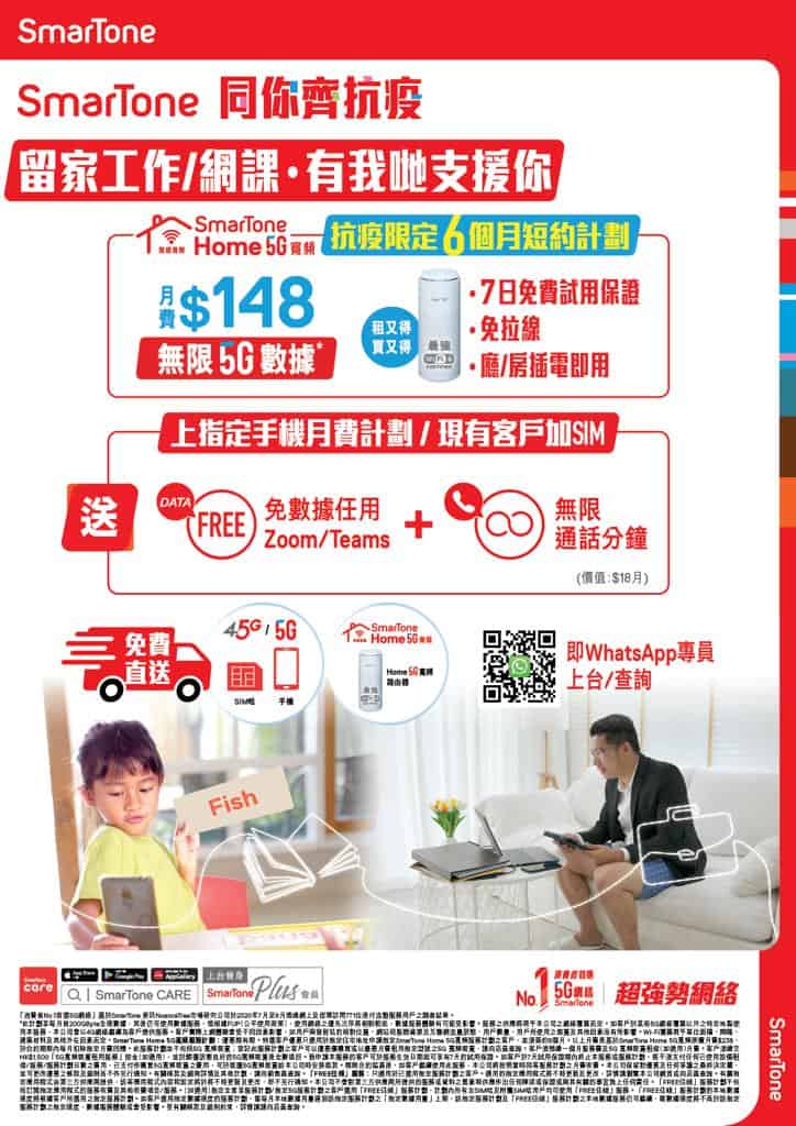 香港第五波疫情已影響大眾市民生活,而因應疫情學生更要留在家中進行網上學習,打工仔更要長時間Work From Home用遙距與同事溝通。而近期 SmarTone 就緊貼客戶需要,推出激抵的Home 5G寬頻短約優惠。免費租用Home 5G Wi-Fi 6路由器 + 無限5G數據,全包價只需$148。另外上台指定流動電話月費計劃更送「免數據任用Zoom/Teams」及「無限通話分鐘」。相比其他企業,可算是非常貼心。想知詳情就留意下文!