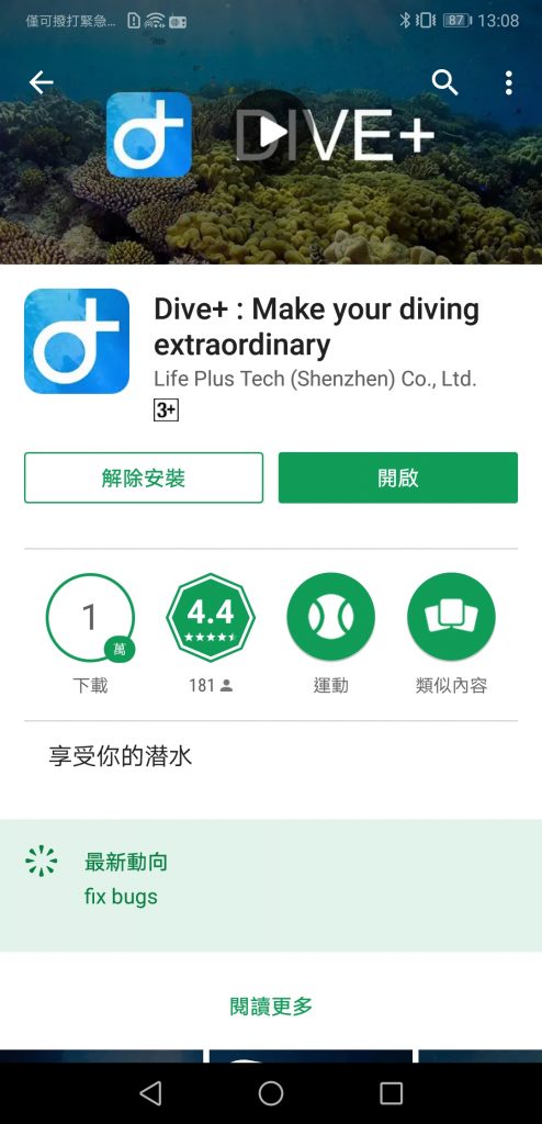 此時在手機安裝一個名為Dive+的專用App,此App功能多多,容後再談。