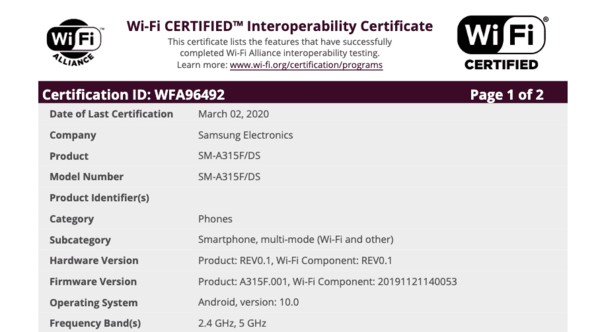 SAMSUNG 預計會在 2020 年推出多款 Galaxy A 系列手機。近日根據 SAMMOBILE 的報導,新機 Galaxy A31 已通過 Wi-Fi 聯盟認証,這意味著該機即將發布上市。