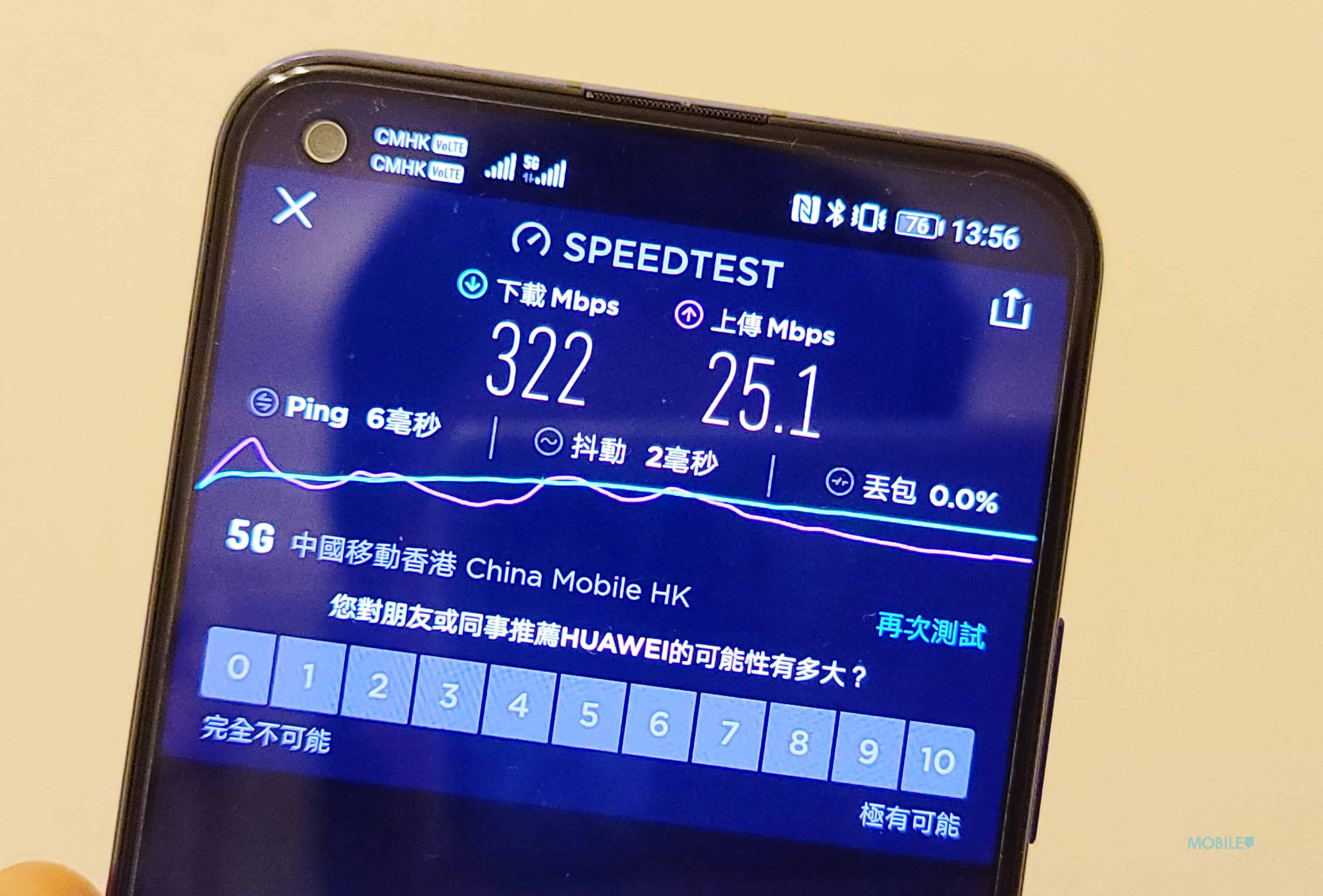 ▲HUAWEI Nova 7 5G 是 HUAWEI 首個支援 5G 網絡的中階系列,再配合 CMHK 的5G 網絡,表現相當出色。
