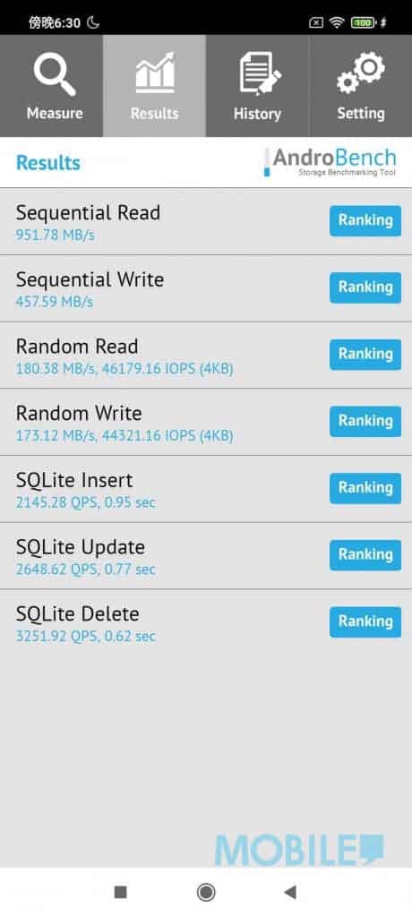 系統效能部份,配備 Snapdragon 750G、內置 6GB RAM 跟 128GB 的 Mi 10T Lite 5G,《Antutu》測試獲 329,647 分,表現跟 Snapdragon 765G 相若;其內置 UFS 2.2 儲存,在《AndroBench》測速達約 951MB/s 讀取、457MB/s 寫入表現,在同價位裝置當中非常出色。另外 Adreno 619 圖像晶片,在《3DMark》跟《GFXBench》測試亦有不錯成績。