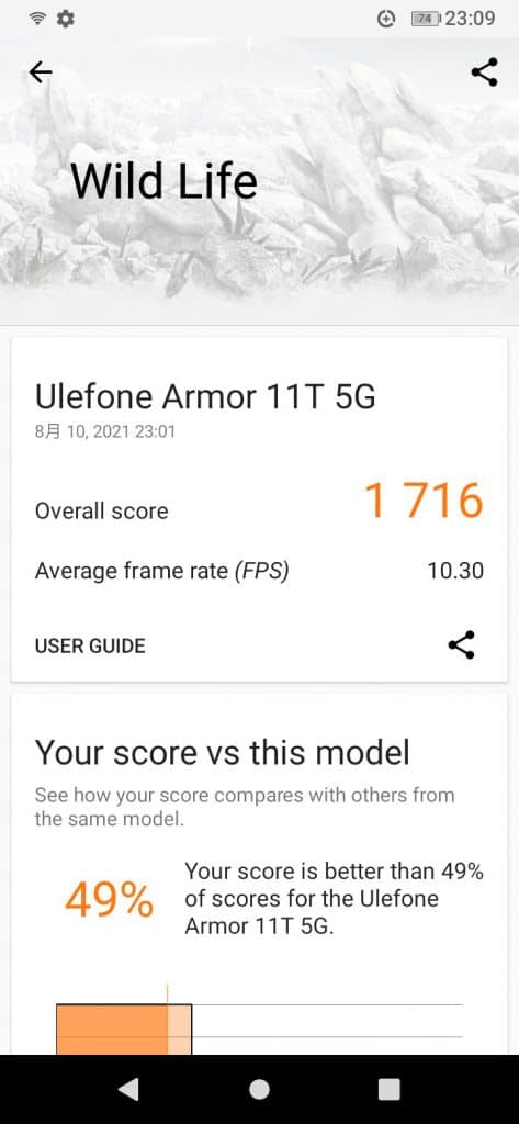 ▲配備 Dimensity 800 5G 處理器的UleFone Armor 11T於跑分水平屬中階手機。