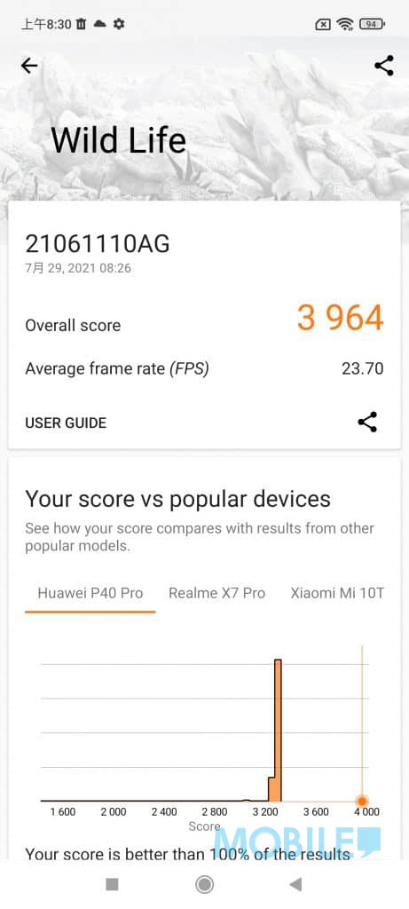 POCO X3 GT 的續航力表現理想,整個測試總耗電量為 71%,估計可開屏使用6.5個小時。在日常應用方面,上網 1 小時約耗電 12% ,至於 Youtube 一小時播放耗電5%,屬中耗電量水平,能應付一日,甚至兩日需要。遊戲方面,以 1小時 Pubg Mobile 及 Pokemon Go 作測試,分別耗用 9% 及15% ,屬低耗電量水平。