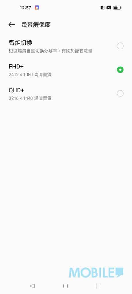 影音設置部份,Find X5 Pro 預設開啟 Dolby Atmos 全景聲,進階螢幕色彩模式除可自選以 Display P3 色域顯示,亦提供 FHD+ 跟 QHD+ 螢幕解像度切換,及對應動態更新率。