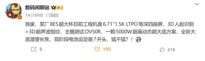 據知名數碼爆料博主「數碼閒聊站」獨家披露,HONOR Magic8 Ultra 將採用一塊 6.71 吋1.5K LTPO 全等深微曲面屏幕。核心性能方面,新機將配備高通最新Snapdragon 8 Elite Gen 5 平台,配合創新的 3D 人臉識別與 3D 超聲波屏幕指紋雙重生物識別系統。