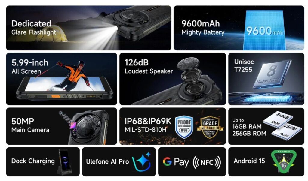 - 9,600mAh 巨量電池 + 126 dB 震撼喇叭 + 強光閃光燈,Ulefone RugKing 開價$1,299!