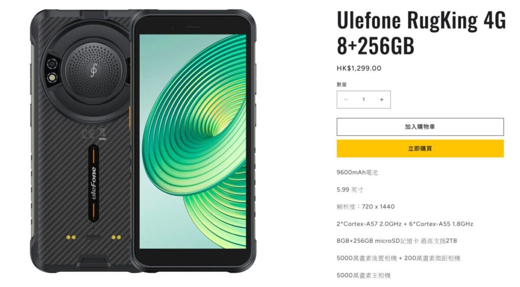 而透過以下連結購買 Ulefone RugKing 於交易付款時可額外享有$20的折扣,變相$1,279就可入手!