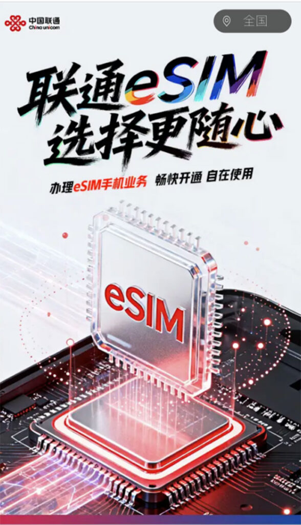 中國移動、中國聯通及中國電信日前已確認正式開通 eSIM 業務,本文刊登時已能看到聯通及電信發表的宣傳圖片(見下圖):