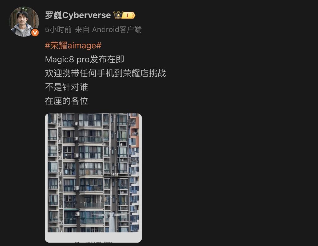 新一輪 HONOR Magic8 Pro 長焦試拍相片,由榮耀首席影像工程師羅巍透過微博帳號上傳,主要為包括潛望長焦的遠攝鏡頭試拍相片。