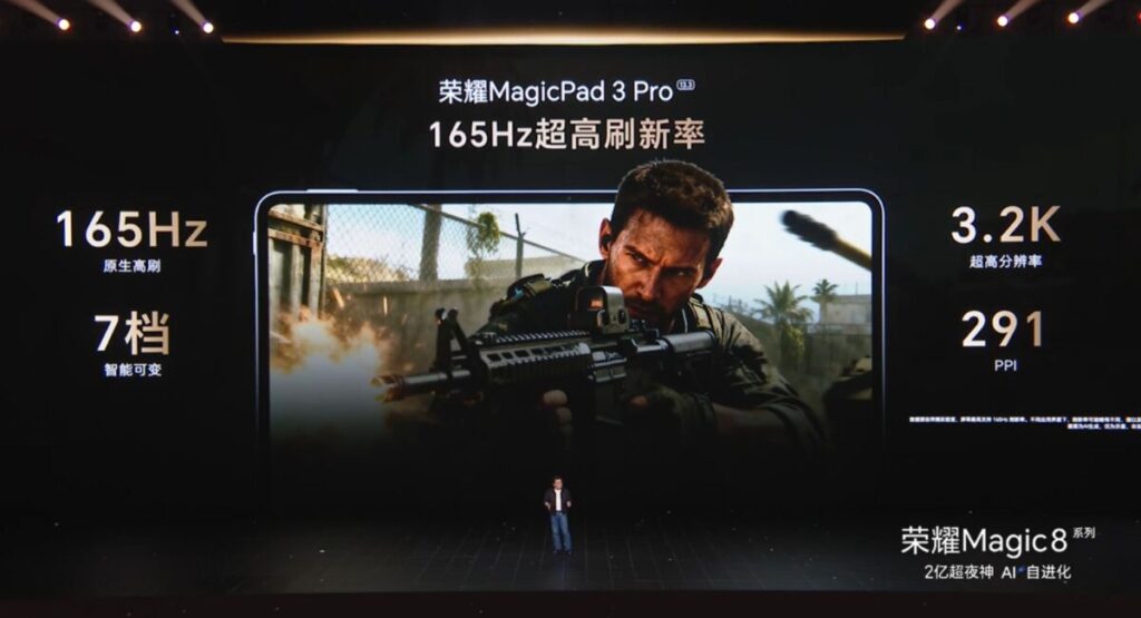 作為系列中的頂級型號,HONOR MagicPad 3 Pro 毫無疑問地成為了全場焦點。該平板配備了一塊達 13.3 吋的 3.2K 超高解像度 LCD 顯示屏,不僅支援流暢度極高的 165Hz 動態刷新率,其峰值亮度更飆升至 1,100 nits,確保在強光下仍能清晰顯示內容。