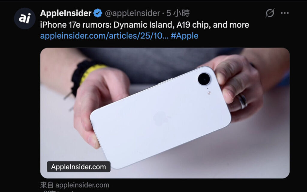據外媒 Apple Insider 在 X 帳號透露,流出消息基本認同 iPhone 17e 將於 2026 上半年發佈,惟確切日子說法不一,有與前代同期 2 月推出、也有 5 月說法。
