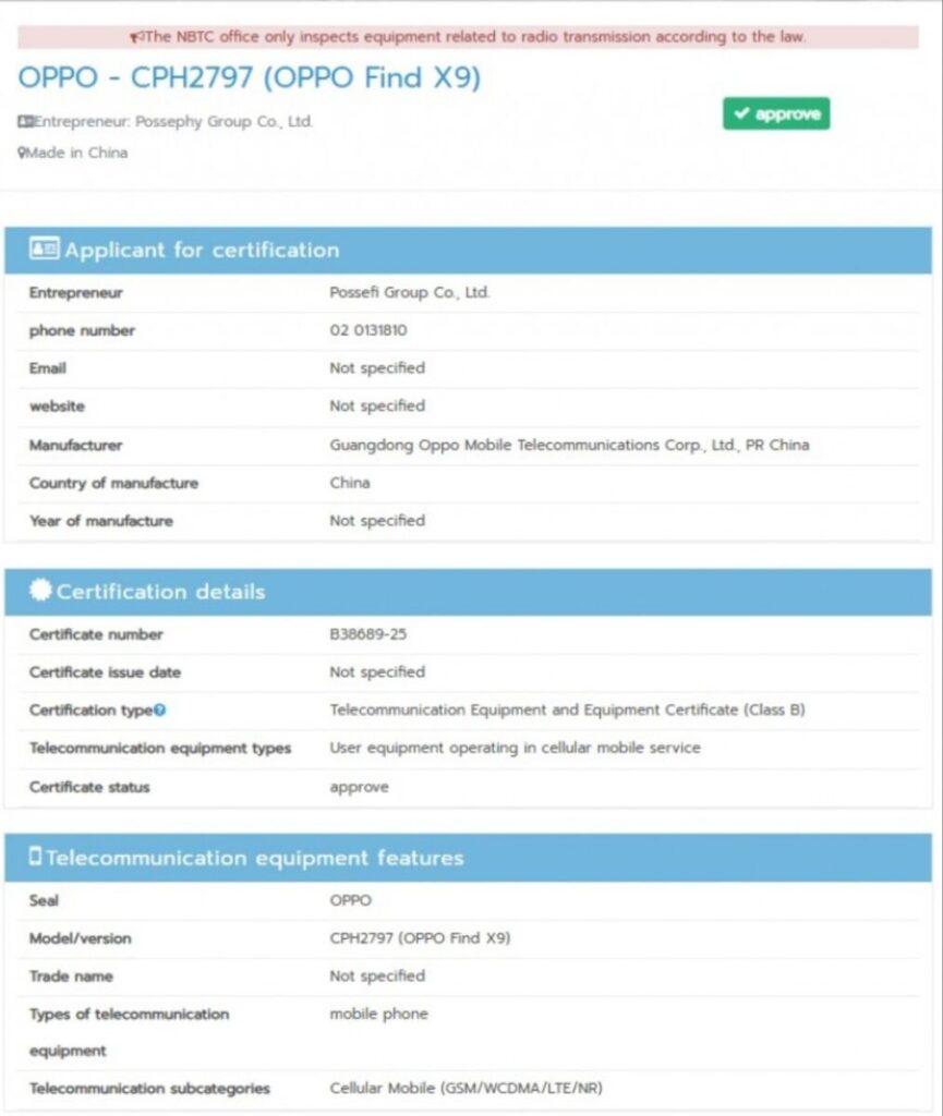 OPPO Find X9 系列將於 10 月 16 日正式亮相。就在發表會前夕,該系列兩款主力機型”標準版 Find X9″ 與 “高階版 Find X9 Pro” 已正式通過泰國 NBTC 認證,其官方型號也隨之曝光,分別為 CPH2797 與 CPH2791,這意味著新機的上市準備已進入最後階段。