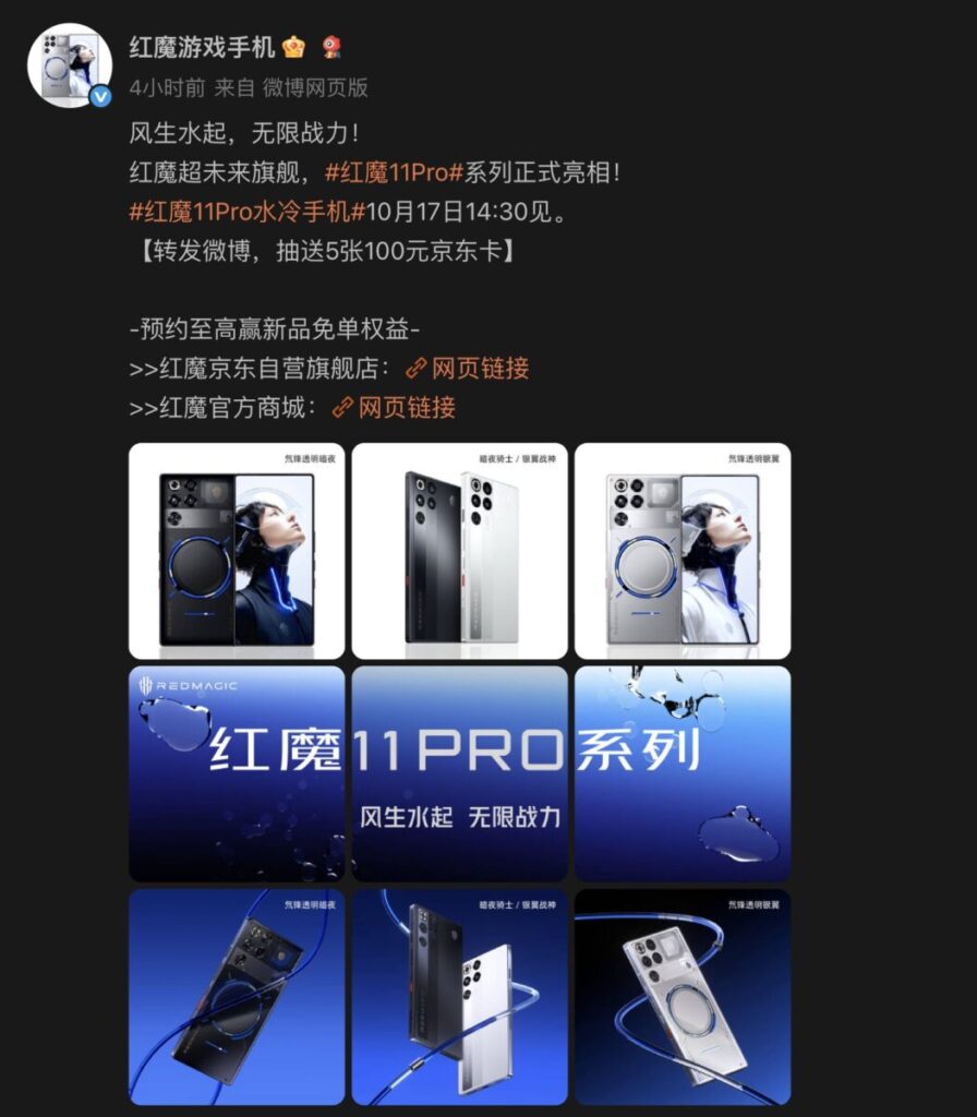 預計在 10 月 17 日(下週五)發佈、配備高通 S8 Elite Gen 5 晶片的紅魔 11 Pro 遊戲手機,較早前廠方正式公佈產品外觀。其中兩款「氘鋒透明」系列配色,將在機背展示設計形格的水冷環,讓裝置外觀更具科幻感。