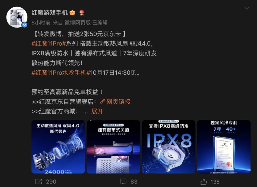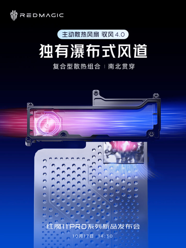 而除了公佈紅魔 11 Pro 系列機身外觀,廠方亦同時披露裝置部份新功能,如配備 24,000 rpm 第 4 代馭風 4.0 散熱扇、瀑布式風道及 IPX8 防水機身等。
