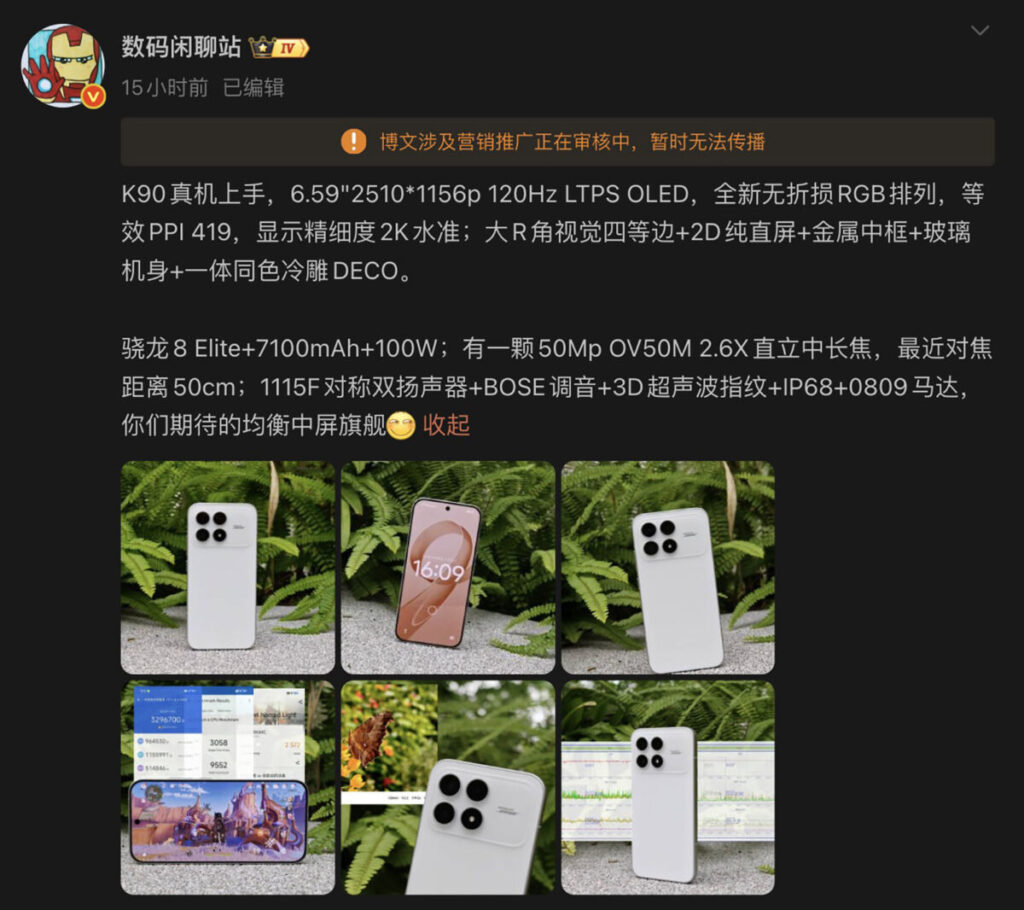 據透露 REDMI K90 配備 S8E 晶片、6.59 吋 1.5K 120Hz LTPO OLED 螢幕,7,100mAh 電池 100W 閃充,BOSE 調音 1115F 對稱雙揚聲等。