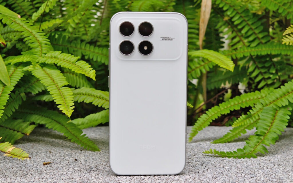 曝光相片可看到 REDMI K90 機背冷雕 DECO 鏡頭組、旁邊刻上 Sound by BOSE 字樣;機身採圓滑邊框線條處理,正面配備四邊窄邊框中置開孔屏。