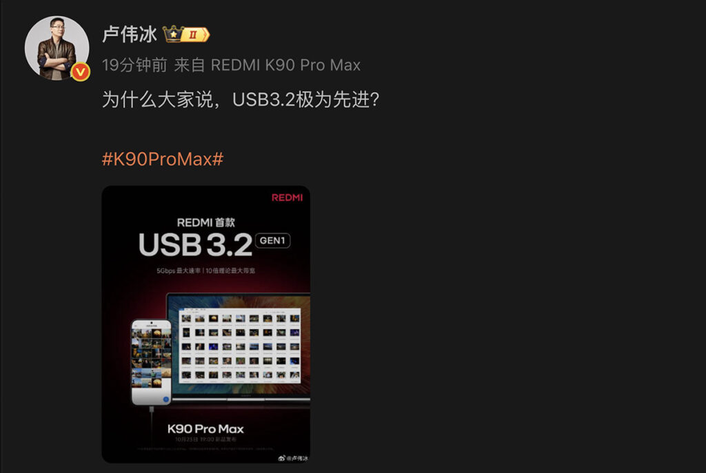 另外小米集團合伙人盧偉冰亦在微博帳號,披露 REDMI K90 Pro Max 將對應 USB 3.2 Gen 1 高速傳輸,及具 Xiaomi 17 Pro Max 同款 RGB 陣列 6.9 吋螢幕。