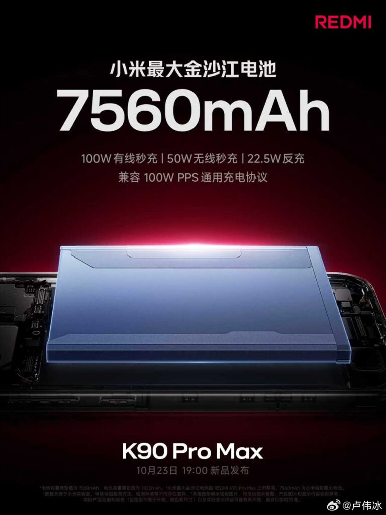 據 REDMI 紅米手機官方微博帳號資訊,REDMI K90 Pro Max 確認在 10 月 23 日(週四)晚上 7 時舉行新品發佈會,同時廠方亦曝出更多裝置資訊。