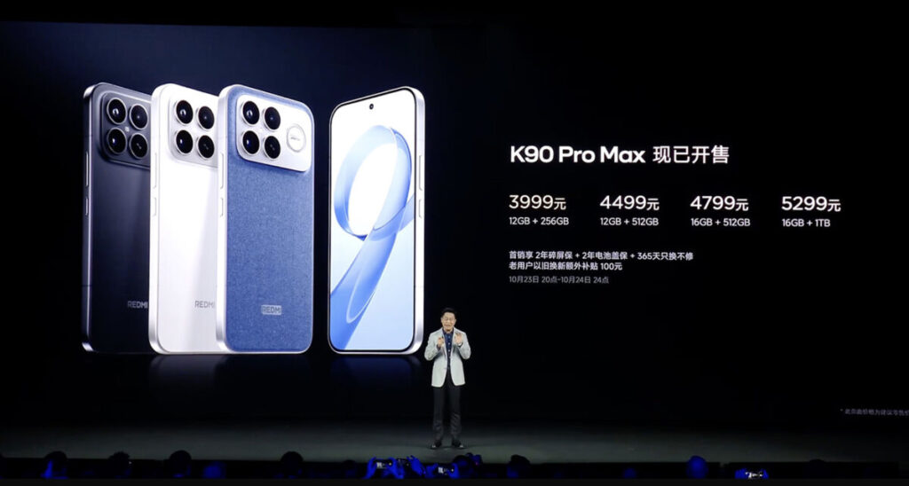 現時 REDMI K90 Pro Max 已正式開賣,其具招牌丹寧色、流金白及黑色款選擇,具 12+256 至 16+1TB 其四種儲存配置,售 3,999 人民幣(約港幣 $4,360)起。