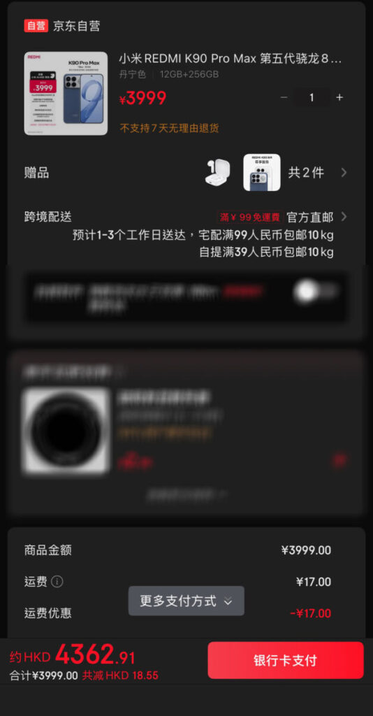 在港用家想入手的話,本文刊登時京東港澳 App 小米官方自營店亦已上架 REDMI K90 Pro Max 手機,標配 12+256 包郵到港價約 $4,362.9 港元