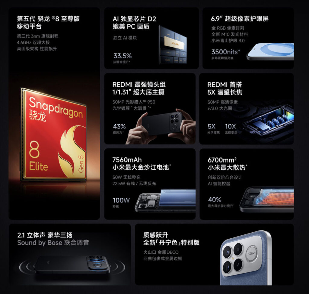 Mobile Magazine 短評:作為 S8 Elite Gen 5 新旗艦,REDMI K90 Pro Max 跟此前推出 realme GT8 Pro 入場價同為較相宜機型,加入 BOSE 調音聲表現備受期待。
