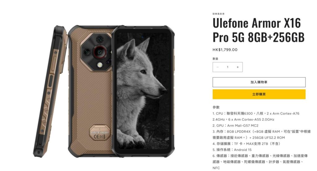 Ulefone Armor X16 Pro 定價為 $1,799,而透過以下連結購買 Armor X16 Pro 於交易付款時可額外享有$20的折扣,變相 $1,779 就可入手!