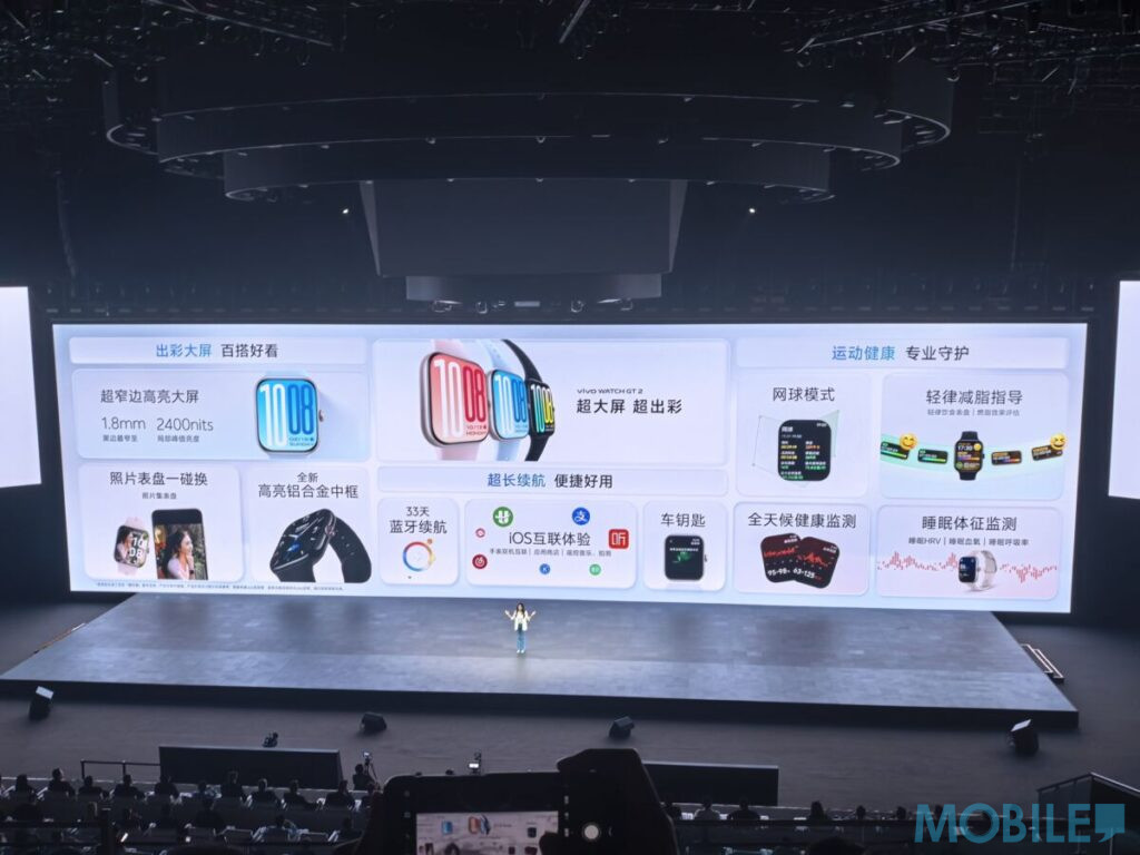 健康與運動功能是 Watch GT 2 的強項,內建光學心率與血氧感測器,並提供全面的睡眠與壓力監測。它支援超過 100 種運動模式,特別針對跑者設計了內建 AI 教練、跑步指引與跑姿分析功能;同時也加入專業的網球模式,可詳細分析揮拍動作。系統方面運行 vivo 自家的 BlueOS 3,並具備內建揚聲器與麥克風,方便用戶直接透過手錶進行語音通話。