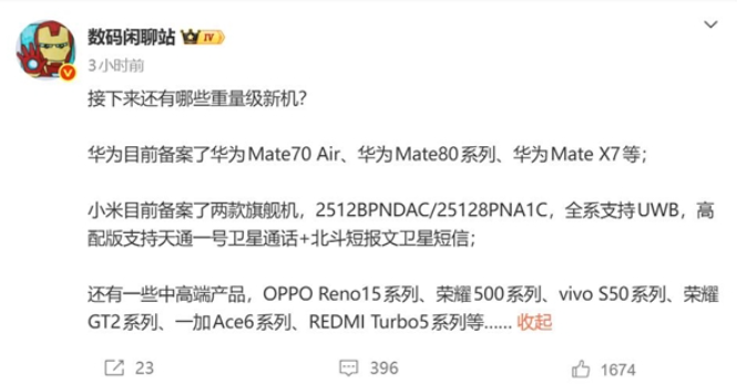 日前據知名數碼博主「數碼閒聊站」透露,小米新一代旗艦手機 17 Ultra 已正式備案,將推出兩個版本,型號分別為 2512BPNDAC 與 25128PNA1C。全系列均支援 UWB 超寬頻技術,而高配版本更獨家搭載「天通一號衛星通話」與「北斗短報文衛星短信」雙衛星通信系統。