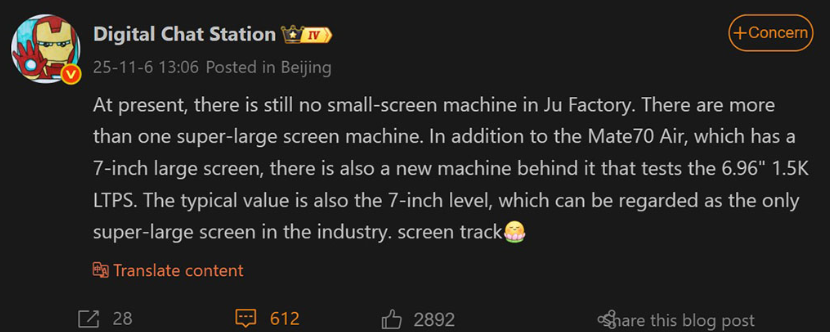 早前數碼圈曾流傳 HUAWEI 將於 11 月推出主打中端市場的 Mate 80 迷你版本,不過知名爆料達人 DigitalChatStation 最新指出,華為暫時根本無意開發小屏裝置,反而正集中測試另一款7吋大屏手機,打破市場對華為將跟隨「小屏潮流」的猜想。
