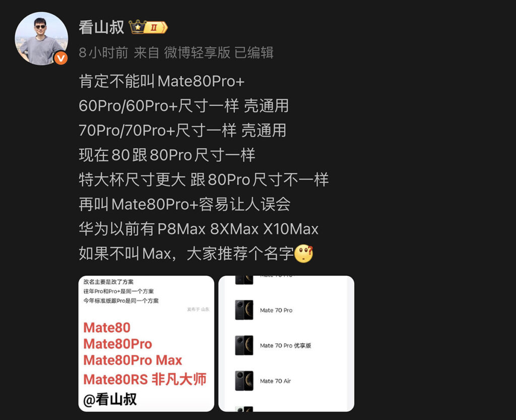 因此如保留以往 Pro+ 命名方式或容易讓用家混淆,故有是次更名 Mate 80 Pro Max 之舉。好消息是這款定位近似同廠 Pura 80 Ultra 產品,似乎價格將較便宜。
