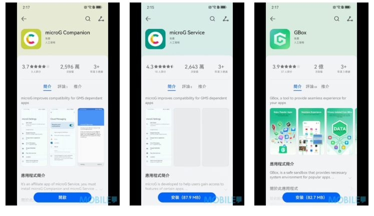 ▲ 經 AppGallery 下載兩款 MicroG 服務跟 Gbox