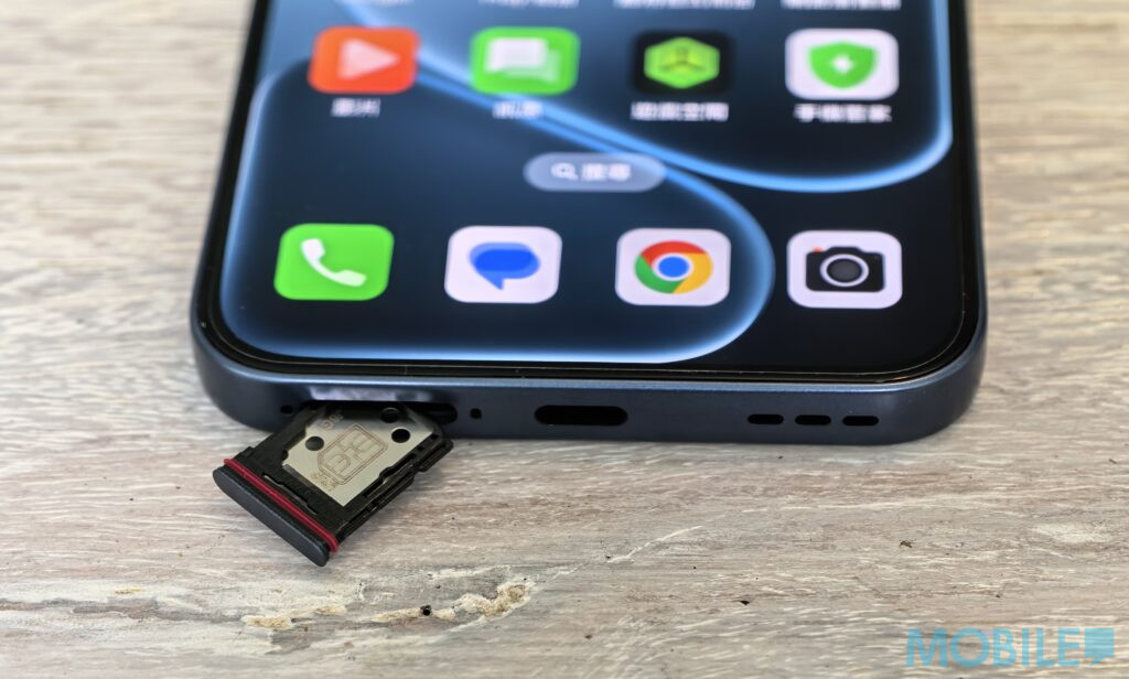 ▲機底就設有揚聲器、Type-C 充電接口及雙 SIM 卡卡槽。