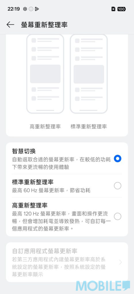 ▲系統內用戶可自行選用智能、60Hz 及 120Hz。