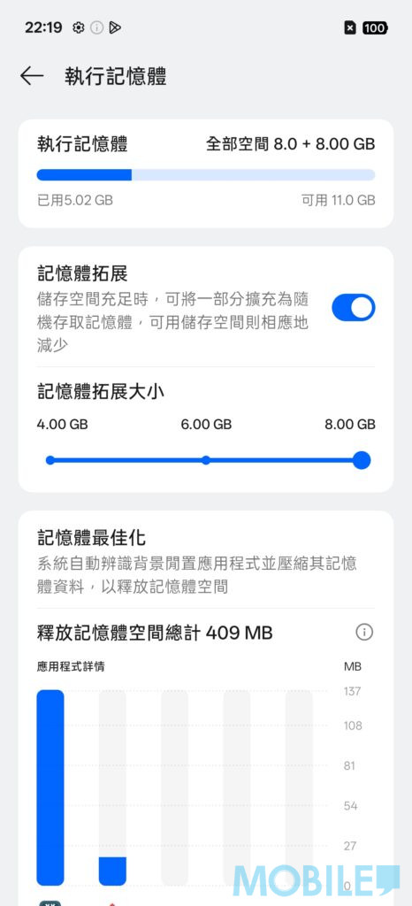 ▲OPPO A6 Pro 5G 加入“記憶體拓展”功能,用戶可於設計內自行拓展 RAM 的大小,用戶最多可以為手機提升 8GB RAM。