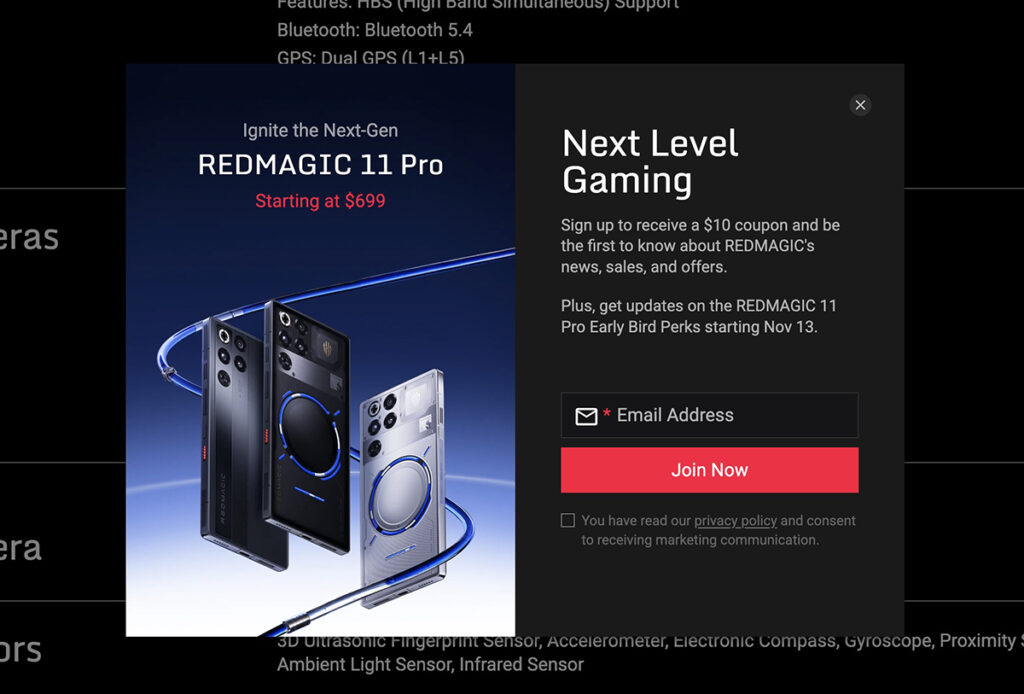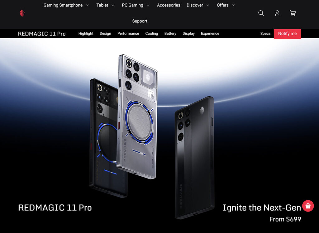 全球首款配備水風雙冷的紅魔 11 Pro+ 遊戲手機,屬現時效能頂尖的 Android 旗艦裝置。較早前品牌 Redmagic 全球官網,亦上架國際版 Redmagic 11 Pro 手機,其配置等同國行紅魔 11 Pro+、同樣以 AquaCore 水風雙冷配 S8 Elite Gen 5 平台作主打。