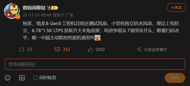 根據爆料內容,這款定位中階市場的新機最大亮點在於配備了具備「防水」與「理論上防塵」特性的主動式冷卻風扇,此設計與前代 K13 Turbo Pro 的散熱方案一脈相承。更引人注目的是,據稱該機將搭載高通尚未發表的 Snapdragon 8 Gen 5 處理器,這將使其實現顯著的性能躍升。