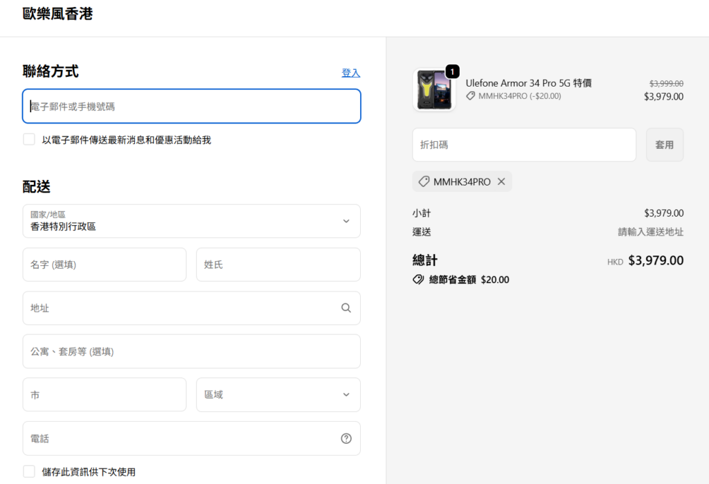 Ulefone Armor 34 Pro 現時建議零售價已減到 $3,999。而透過以下連結購買 Ulefone Armor 34 Pro 於交易付款時可額外享有$20的折扣,變相可以以$3,979就可入手!