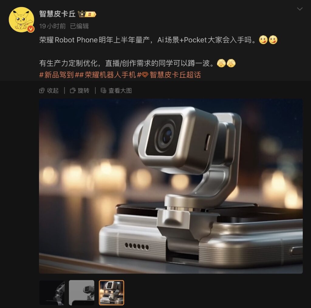 產品定位方面,盛傳 HONOR ROBOT PHONE 將走「AI 場景 + (Osmo)Pocket」 風格,可視為有後者 Vlog 相機功能的 AI 錄影手機。