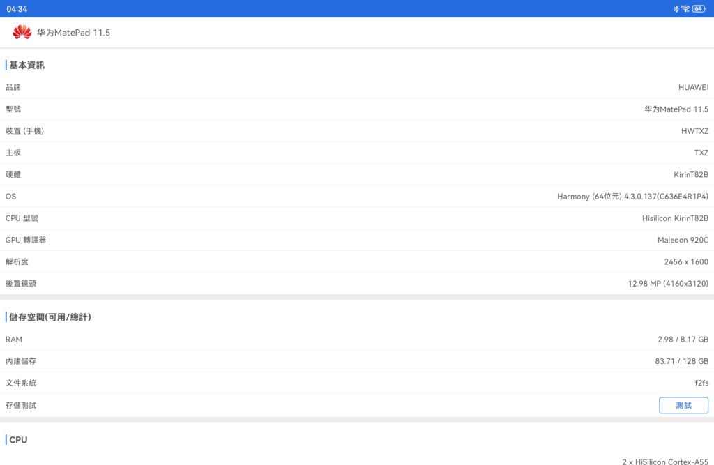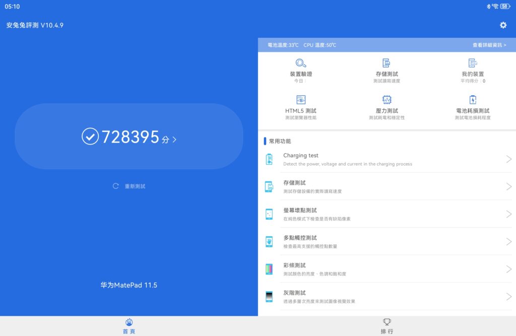 ▲HUAWEI MatePad Pro 11.5 配備 Kirin T82B 處理器,內建 8GB RAM + 128GB ROM,配備 10,100Ah 大電池,支援 40W HUAWEI SuperCharge。而配備 Kirin T82B 處理器的 MatePad Pro 11.5  於 AnTuTu 得分達 728,395 分。