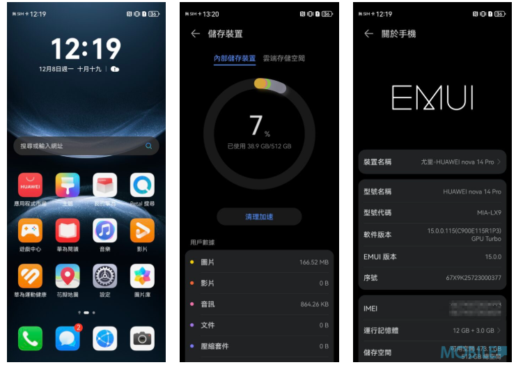 ▲nova 14 Pro 於軟件上搭最新的 EMUI 14.2,港版就提供了512GB 版本,扣除 EMUI 15 系統後,用戶仍有約 473GB 空間可使用,以中檔次手機來講算是相當足夠。此外,nova 14 Pro 上的 EMUI 15 透過安裝”microG”後,可完整使用 Google 服務。
