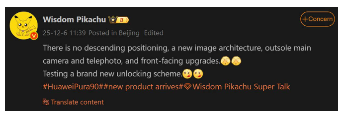 - HUAWEI Pura 90 前置鏡頭大升級,或首配 3D 人臉解鎖!