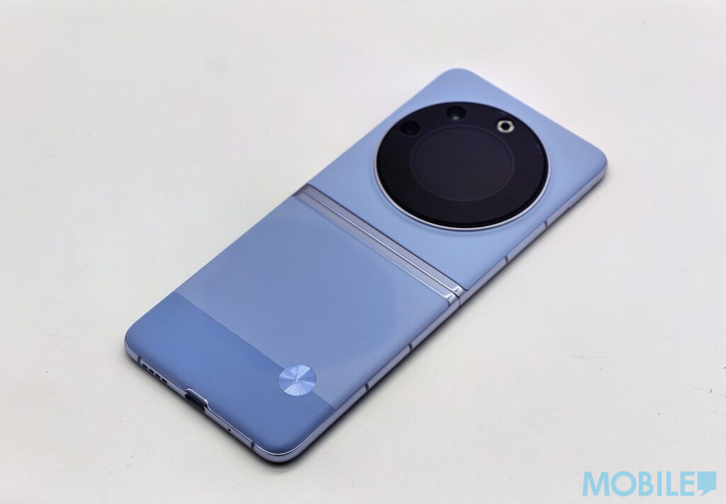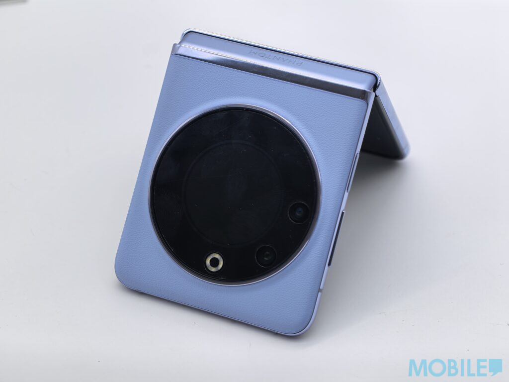 TECNO Phantom V Flip 5G 的最大亮點在於其創新的機身設計。它將一塊 1.32 吋的圓形外屏置於機身上半部的中心,相機鏡頭與環形閃光燈則巧妙地環繞其周邊,形成一個極具辨識度的視覺佈局。這塊圓形外屏的畫素密度為 352ppi,能清晰顯示通知、時間、天氣及拍攝預覽,提升了摺疊狀態下的操作效率。