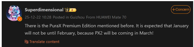 回顧華為 Pura 系列摺疊手機的發展,首款機型於去年三月登場,其獨特的 16:10 外屏比例與藝術化設計語言,在市場上獲得不少關注。而按照慣例,下一代主力摺疊機型通常會於每年春季更新。然而,最新來自中國爆料者的資訊指出,華為可能會在 2026 年 3 月發表第二代 Pura X 之前,提前於同年 1 月先行推出這款 Pura X Premium Edition。此舉被認為是為了細分市場,在主流旗艦與更注重性價比的機型之間建立明確的區隔。