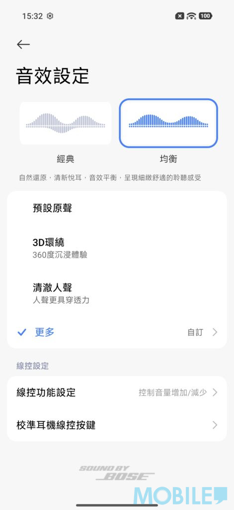 ▲BOSE 更為該手機提供經典與均衡兩種音效模式,經典模式強調低頻飽滿與細節豐富,均衡模式則注重三頻平衡與人聲純淨。