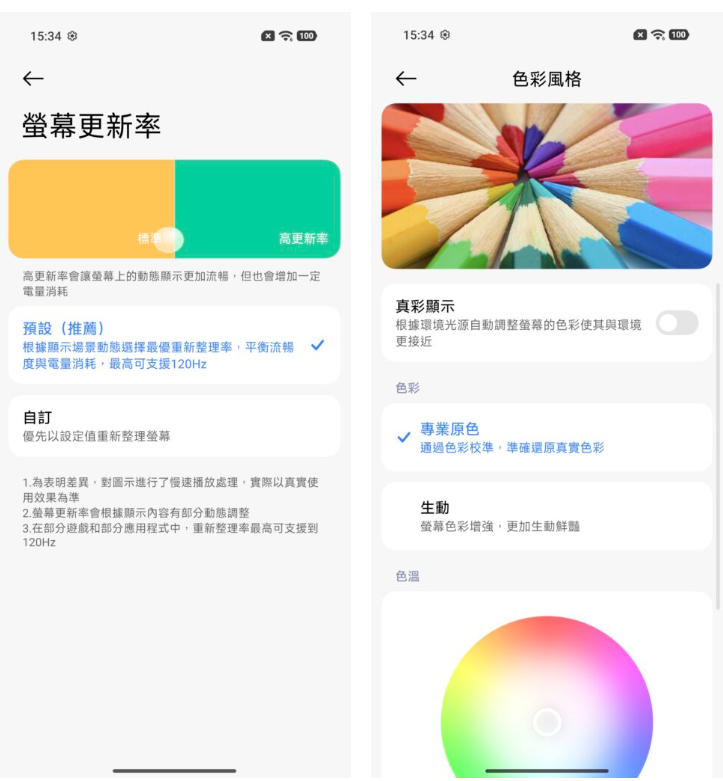 ▲畫面部份對應專業原色及動態更新率。