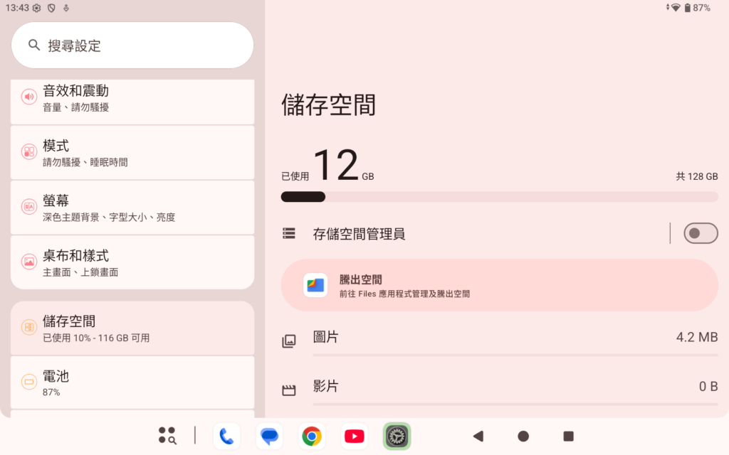 ▲台電 T65 預裝Android 16 系統,介面接近原生風格,預載應用極少,給予用戶高度自訂空間。分屏功能透過手勢即可啟動,搭配大螢幕能同時運行兩個應用,例如左側編輯文件、右側查閱資料,大幅提升效率。系統只佔 12GB 用戶仍有約108GB 供用家使用。