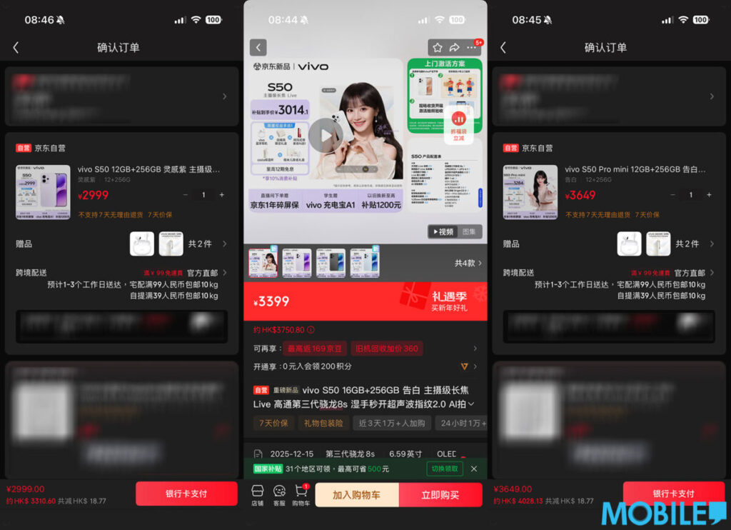 兩款 vivo S50 系列手機現時已開放預售、並在 12 月 19 日(週五)開賣,在港用家透過電商如京東港澳 App 品牌自營店,現可下單包郵到港出機。