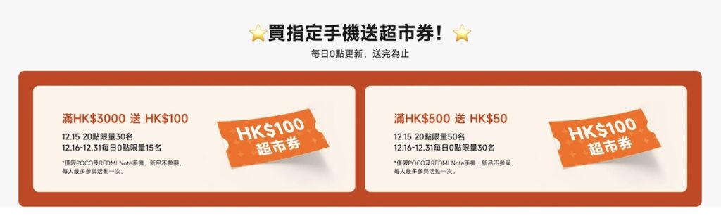 - Xiaomi 聖誕嘉年華出機最平 $999 起!超市券、秒殺價、手機券、簽到積分優惠一文速睇