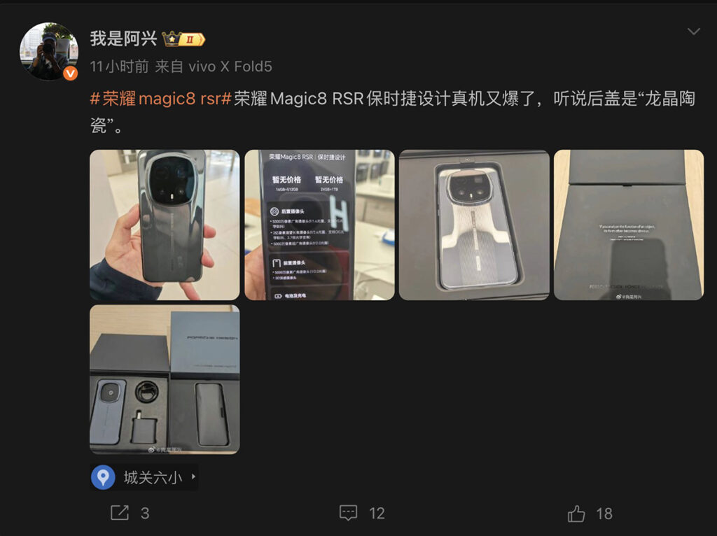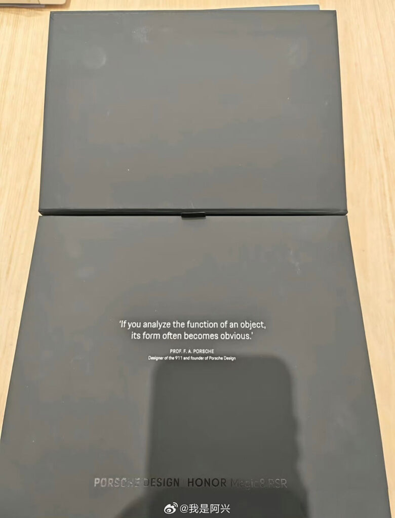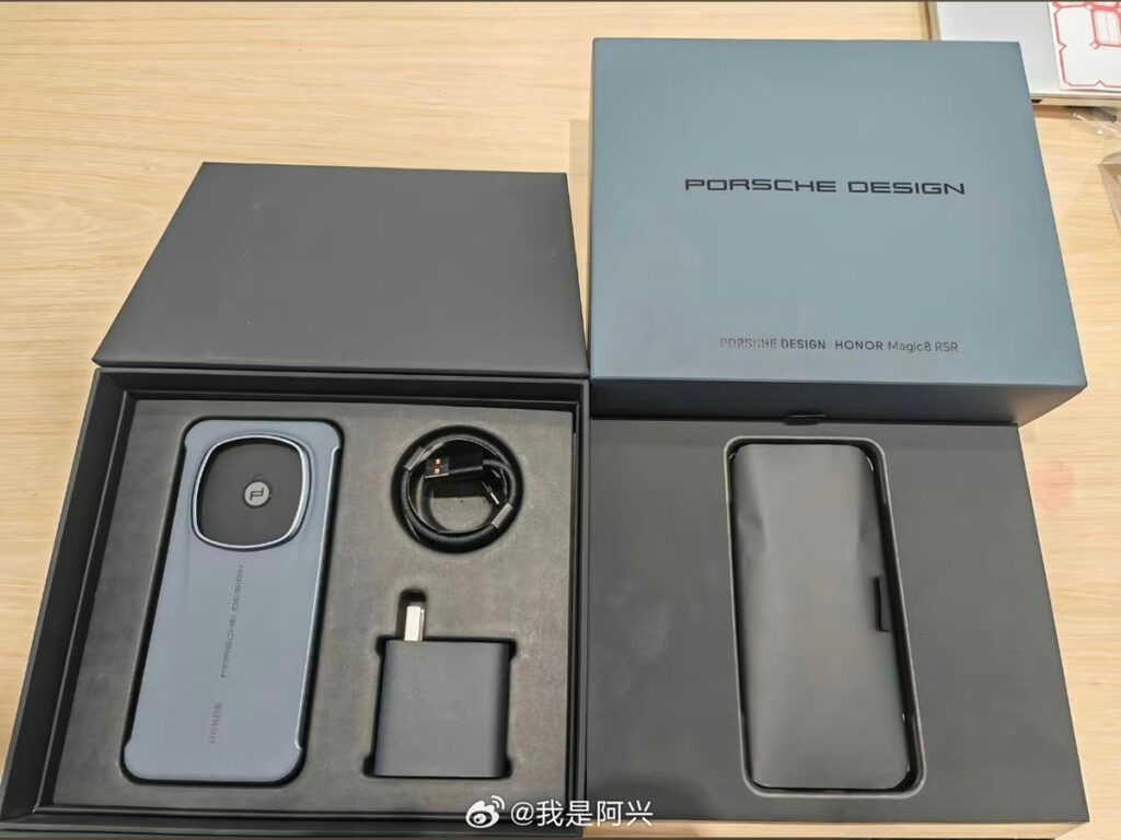 HONOR Magic8 RSR 保時捷版實機照片,由數碼博主「我是阿興」在微博帳號上傳展示,當中包括手機正背面、螢幕規格截圖以至包裝盒內容。